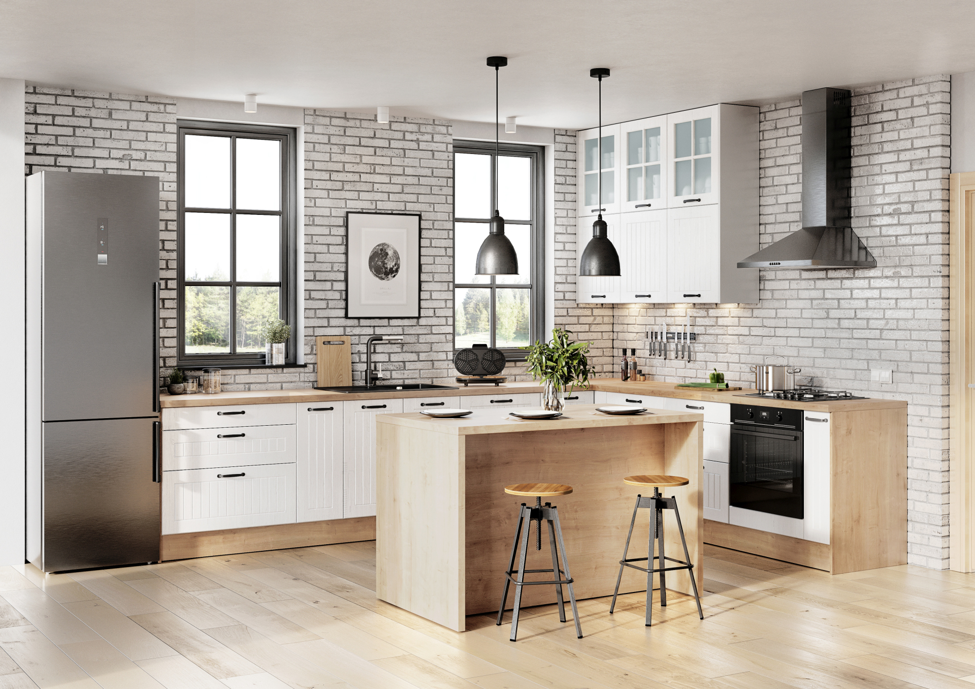 – W takiej roli sprawdzi się już wyspa z blatem o długości 120 cm i szerokości 80 cm – mówi Sylwia Kowalska-Mikutel, projektantka Spółki Meblowej KAM. – Taki nieduży model dostępny w naszym systemie KAMmono jest praktyczny, ponieważ jednocześnie pełni funkcję powierzchni roboczej, na której możemy przygotowywać posiłki i zastępuje stół, na który brakuje miejsca w małych kuchniach. Pod blatem można zamontować szafkę, dzięki czemu zyskamy dodatkowe miejsce do przechowywania.